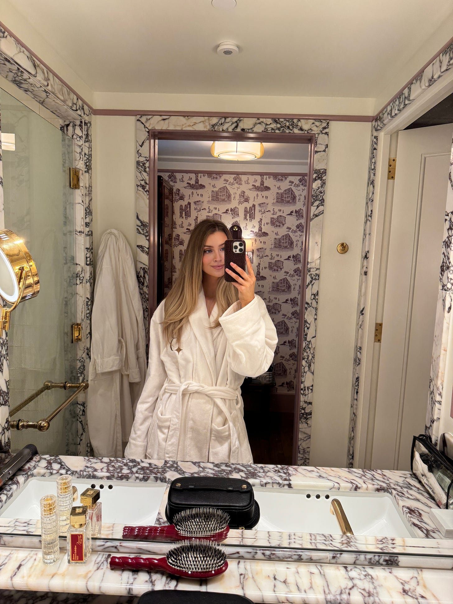 So when Valentine’s Day came around this year and both my husband and I were drowning in work, I had my sights set on a romantic staycation—a quick, easy escape. Instead, he gave me something more special: the essence of Paris, right in our own backyard, by booking us a stay at Fouquet’s New York. More than just a luxury hotel, Fouquet’s is a piece of Paris itself. Established on the Champs-Élysées in 1899, it’s long been synonymous with timeless luxury, French refinement, and impeccable hospitality. Their New York outpost opened in 2022, bringing that same storied heritage across the Atlantic. Since then, it’s earned two Michelin Keys (an Exceptional Stay) and a top spot on my NYC hotel hit list.