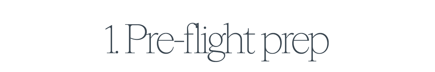 I’m also an electrolyte girl, although my powder of choice is now, and always will be, Pludo. I’ll do a glass of Pink Yuzu before my flight (preventative hydration!) and one upon my arrival.
