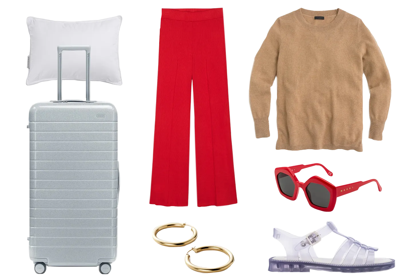 For the past year or so, I’ve worn the Donni cropped kick flares for most flights, with a J Crew cashmere sweater and a Gap long sleeve tee. Or, I’ll wear baggy vintage Levi’s and the same on top, with a Brandy Melville short sleeve tee for summer. For shoes, it’s almost always Friulane, which I have from multiple places (Vibi Venezia is a great one though), or in the summer it’s often my classic Melissa fisherman jellies with socks, because they’re bulky and I usually don’t have much more room in my suitcase. A few months ago, I got a new pair of Tod’s driving loafers for the first time in a decade and now they’ll likely be my go-to because they make sense for everything.