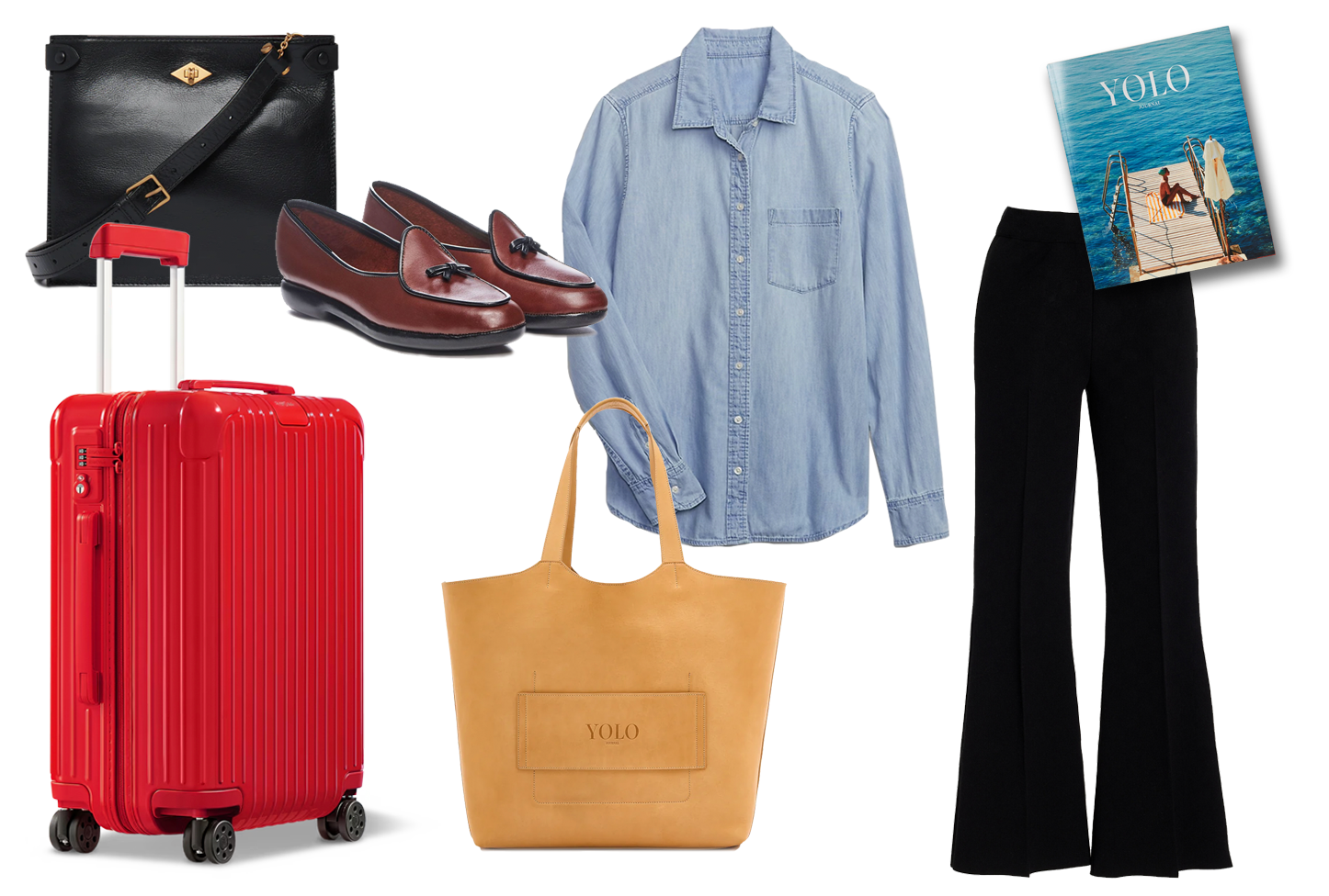 Regardless of the season, I’m wearing a stretchy kick flare pant since most of my flights are long-haul. I like these from Ann Mashburn, and these from Highsport. My shirt is always an oversized chambray from the Gap. If it’s summer, I’ll wear a Belgian loafer on the plane, and if it’s winter, it’s Sanders Chelsea boots. Always an oversized sweater for freezing planes, or, if it’s warm, as an additional pillow.