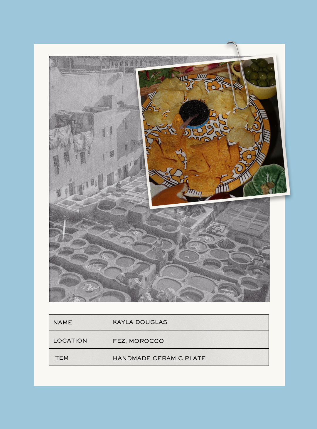 Serveware with a story: While I’m not typically one for souvenirs, the pieces that mean the most to me are the ones that I can bring home to subtly elevate the everyday. A favorite: the set of mismatched, handmade ceramic plates I found in Fez during a 2019 trip across Morocco. Funny thing is, despite being meticulously wrapped, they all shattered en route to Casablanca—but after discovering this with the hotel team on our checkout, the Four Seasons Casablanca team generously drove several hours back to Fez, had them remade (luckily I had a photo they could recreate from!), and shipped a newly created set to my apartment in New York. When I host friends for West Village Book Club and serve with them today, I think about all the wonderful people who were a part of getting them to my table.