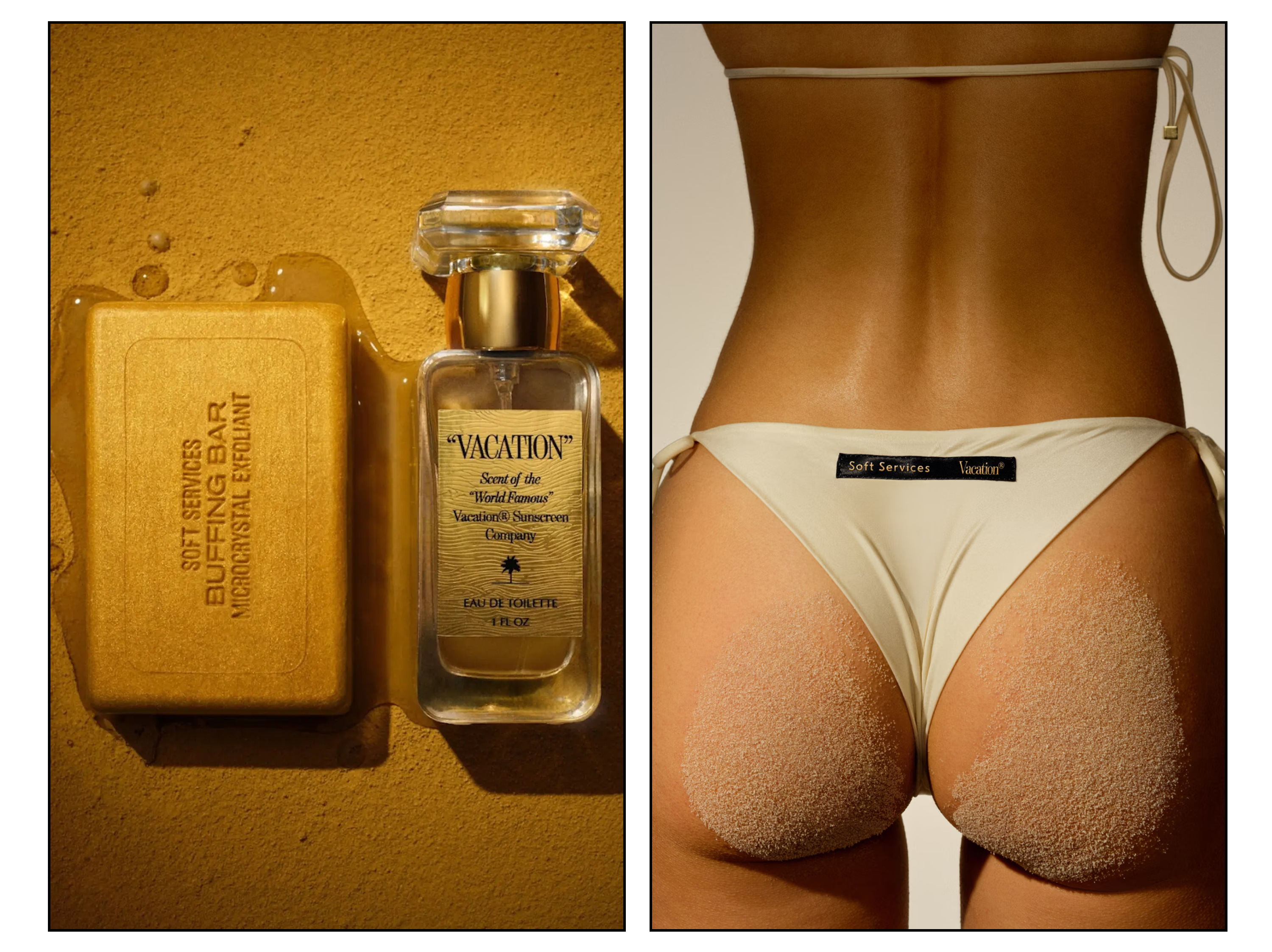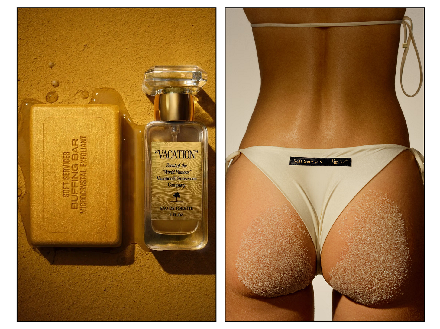 Two of my favorite brands just collaborated and it makes so much sense: Soft Services’ cult exfoliating bar now comes scented with Vacation’s signature fragrance of coconut, banana, pool toys, and swimsuit lycra. If you know either brand, you already understand why this works so well. If you don’t: Soft Services makes the most elevated body care on the market, while Vacation makes sunscreen that smells so good you forget it’s sunscreen.