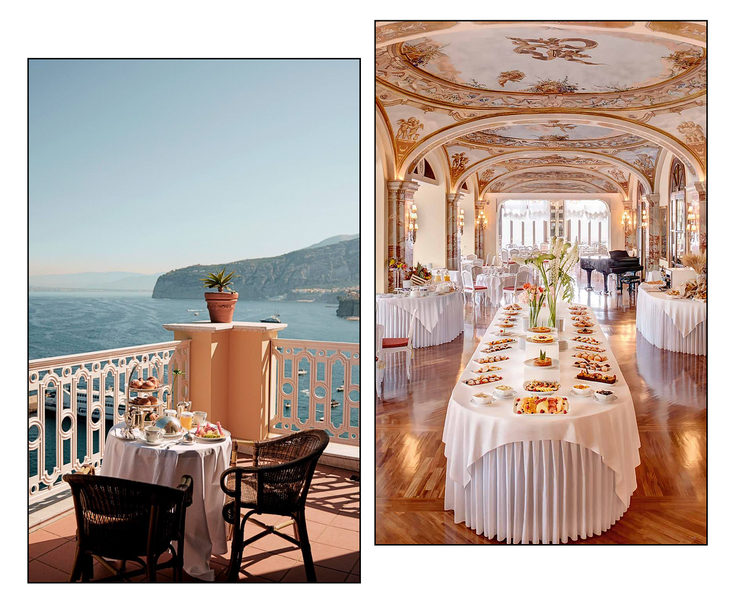 The Grand Hotel Excelsior Vittoria has been perched on a cliff above the Bay of Naples since 1834. It’s been family-owned for nearly 200 years with countless offers to sell and not one accepted. The mythology of the hotel might only be outdone by the visual spectacle it offers: frescoed ceilings, a Michelin-starred restaurant, a private elevator carved into the cliff that takes you straight down to the marina for day trips to Capri, and five acres of citrus groves.